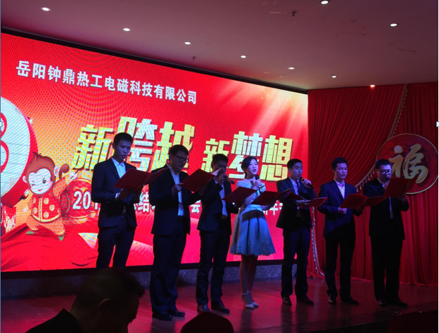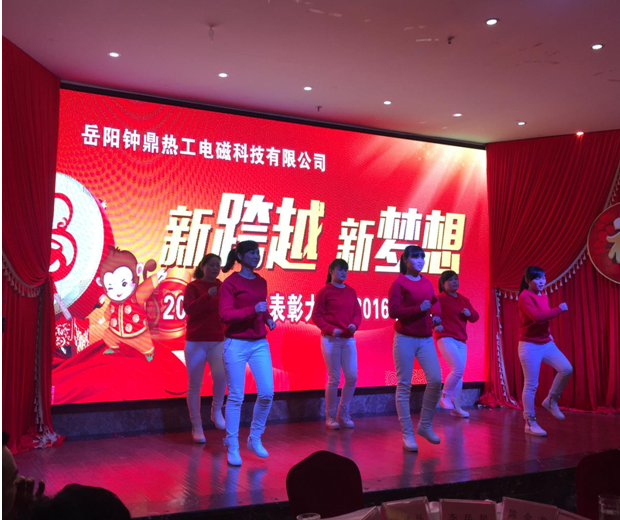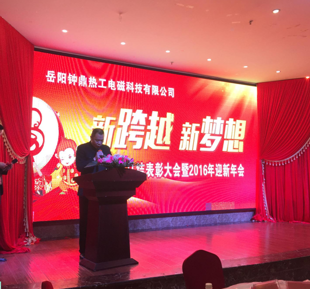 2016年2月3日岳陽鐘鼎熱工電磁科技有限公司2015年總結(jié)表彰大會暨2016年迎新年會在花板橋新大新酒店隆重舉行。鐘鼎熱工青年才俊們的開場詩朗誦《鐘靈毓秀、鼎盛未來》拉開年會的序幕,該詩篇講述了鐘鼎熱工創(chuàng)始人從創(chuàng)業(yè)到發(fā)展、到跨越升級的全過程,是一部非常勵(lì)志的史詩。